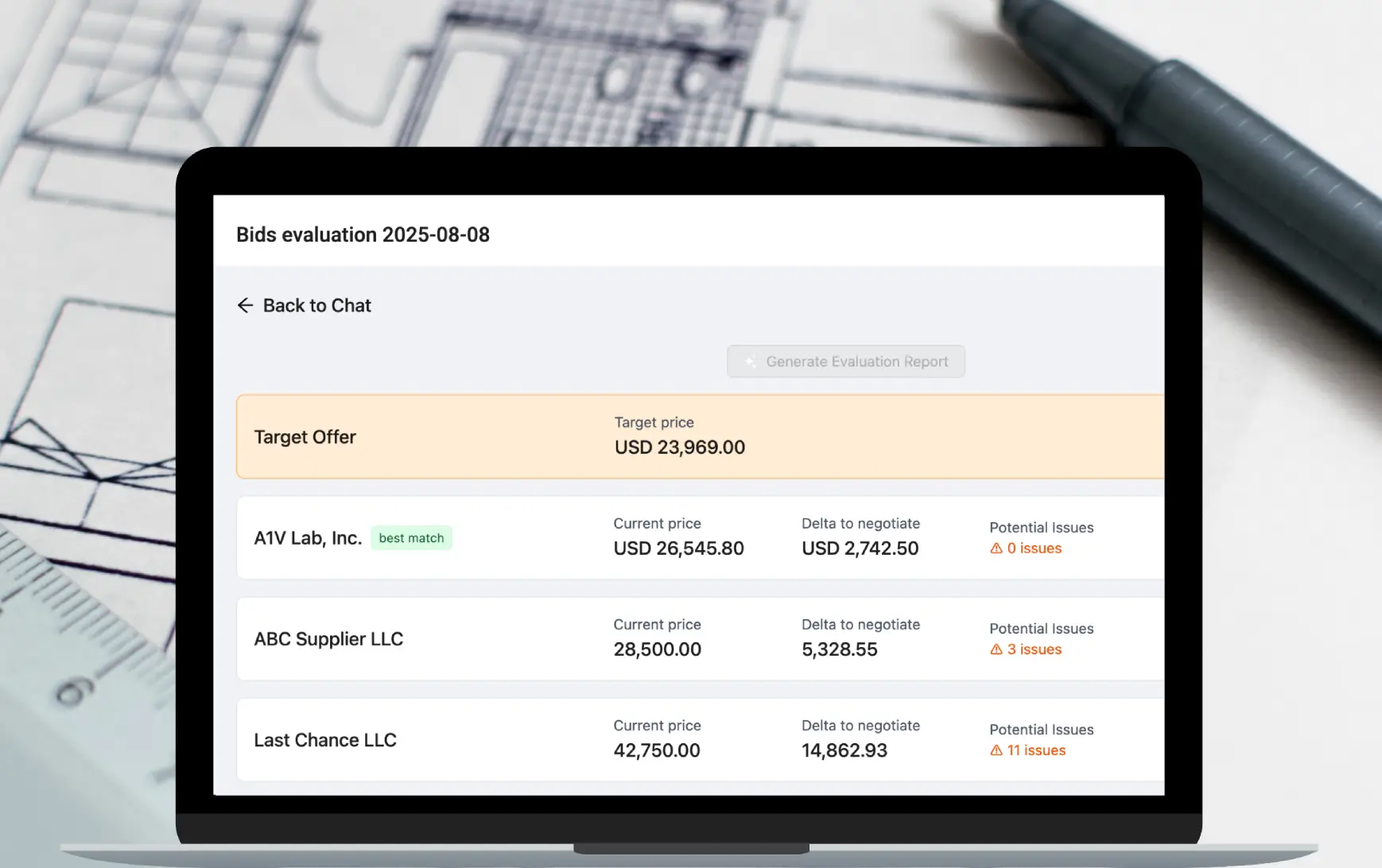 ZOPAAgent.ai evaluated and compared the bids, identifying the best value offer.